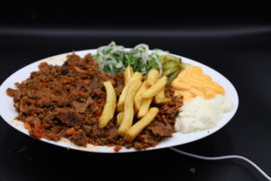 Juicy slices of slow-roasted seasoned beef shawarma served with fragrant rice, fresh salad, warm pita bread, and creamy garlic sauce. 🌯🥗